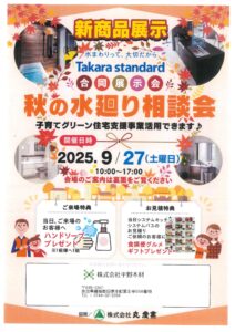 9月27日(土)タカラスタンダード奈良ショールームにて「秋の水廻り相談会」を行います。